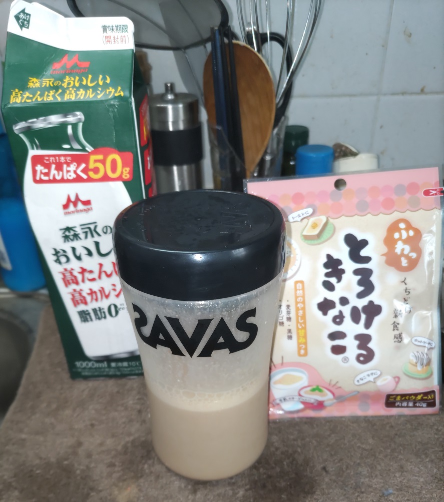200mlの牛乳に大さじ4杯位のきな粉を入れ、